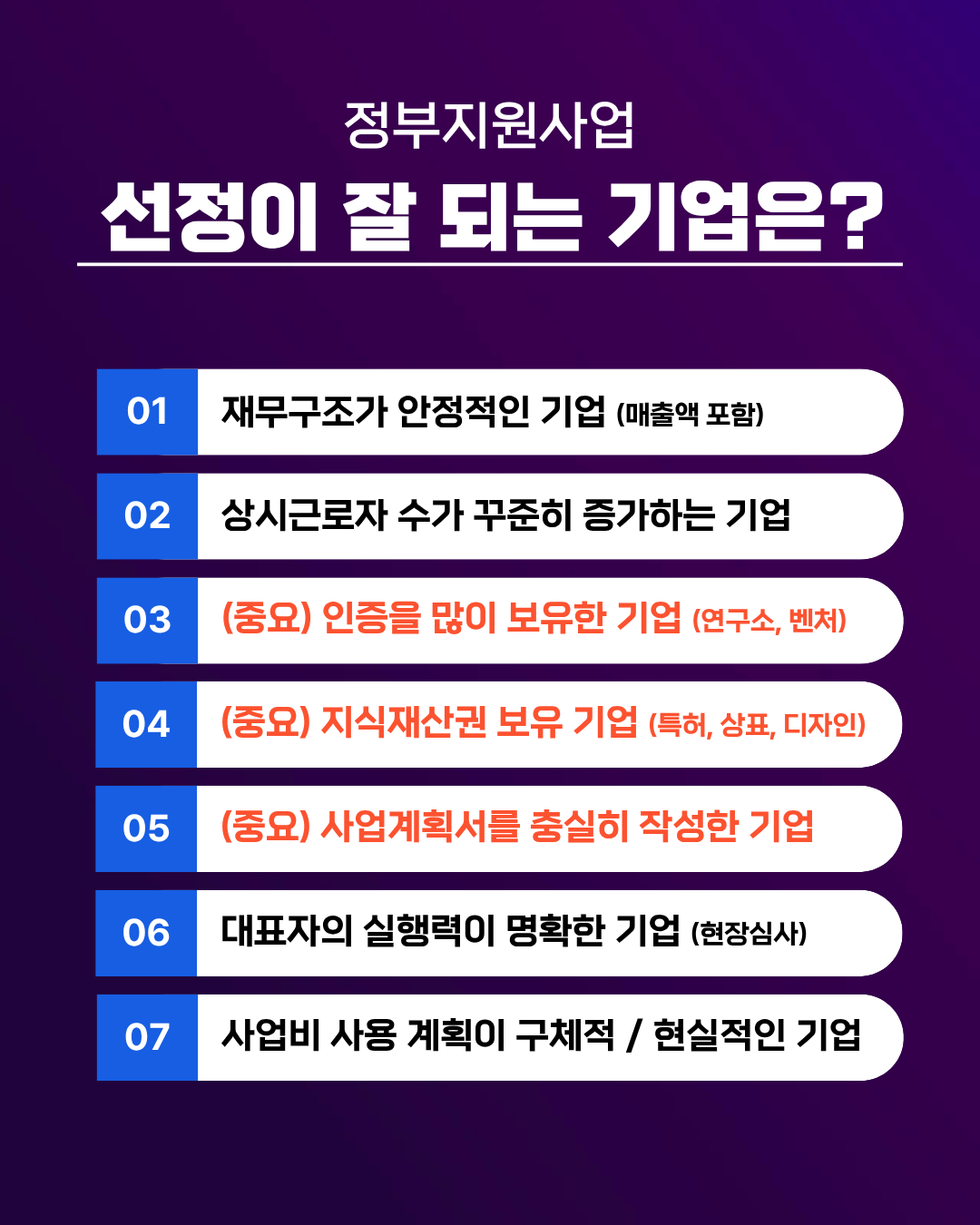 주요 정부지원사업 내용 정리 및 요약