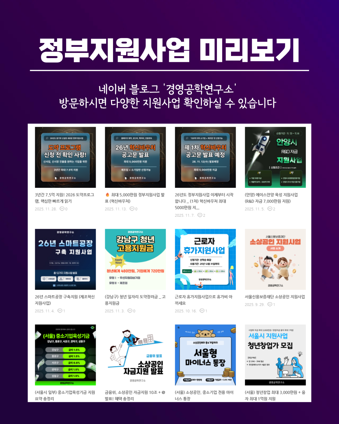 실시간 정부지원사업을 확인하고 싶으신 분들은